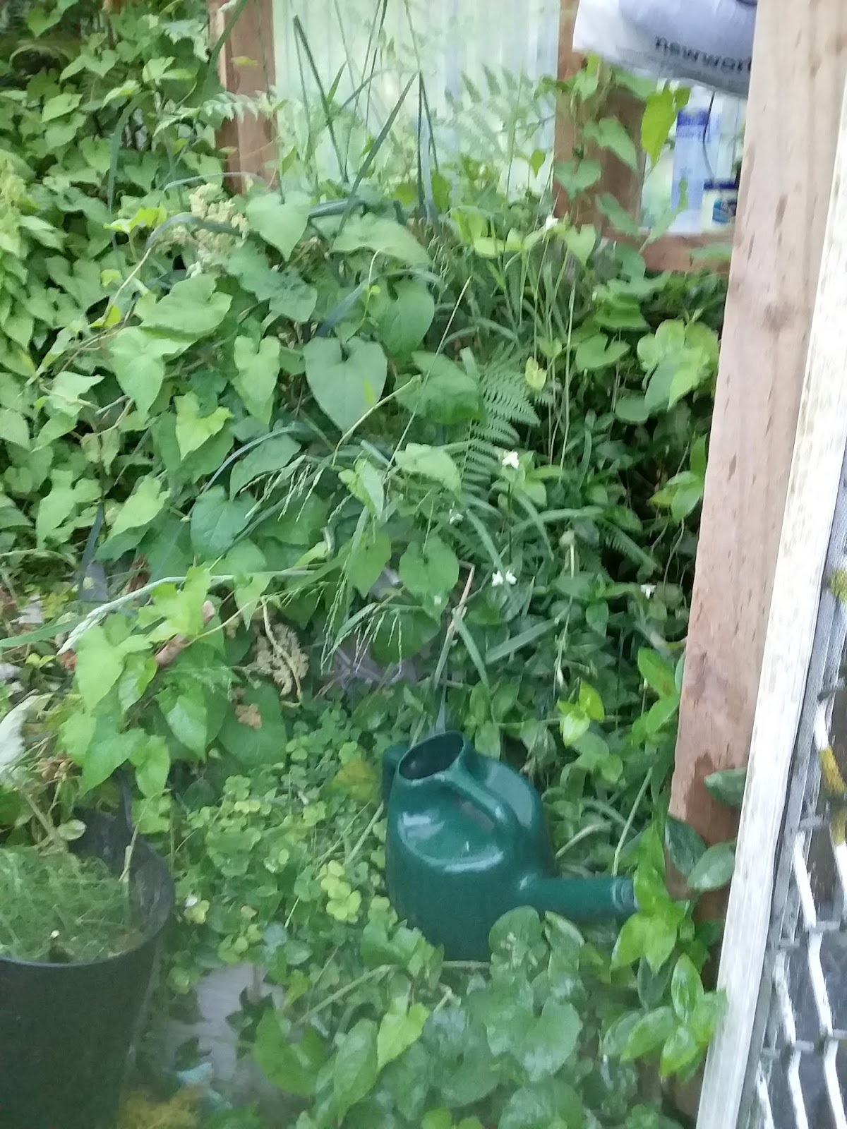 The other day I decided to de-head all the arum maculatum, or Lords-and-Ladies as one of it's common names is and how I shall refer to it from now on. I went to find my basket and the watering can. Usually they're sitting in plain view but no, totally covered. Extricating them was fun 😁